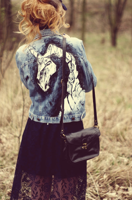 po trzecie, uwielbiam laczyc jeansowe kurtki z jednorozcem z eterycznymi, koronkowymi sukienkami! ...ze sie powtorze. pieknie!