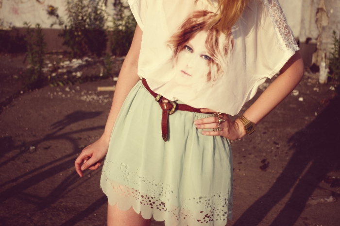 koszulka - Sheinside; spódnica - Pull&Bear; pasek - sh; butki - Primark; teczucha - Parfois; pierdzień mocy - Szpiegowska sprawka