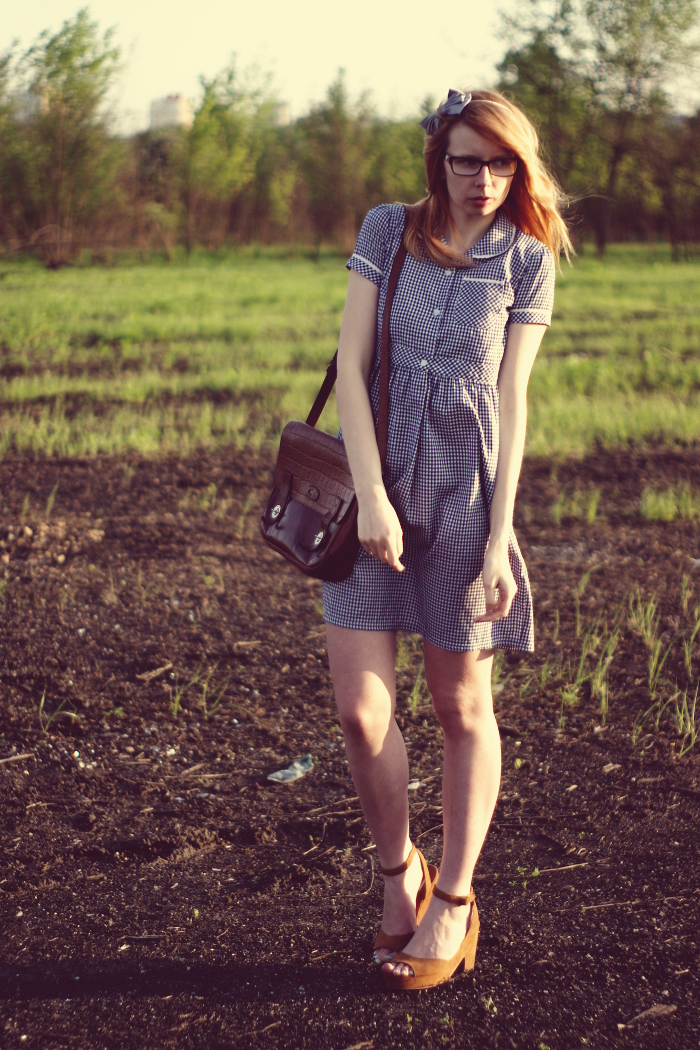 sukienka - gdański vintage shop; sandały, opaska - Oysho; teczka - preznecioch od Zuzki